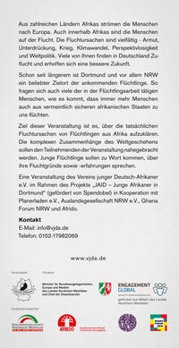 Aus zahlreichen Ländern Afrikas strömen die Menschen nach Europa. Auch innerhalb Afrikas sind die Menschen auf der Flucht – Die Fluchtursachen sind vielfältig - Armut, Unterdrückung, Krieg, Klimawandel, Perspektivlosigkeit und Weltpolitik. Viele von Ihnen finden in Deutschland Zuflucht und erhoffen sich eine bessere Zukunft.