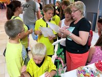 Im Außengelände lockten sportliche Aktivitäten wie die Kleinfußballfeldanlage “Street-Kick“ oder eine Messanlage für die Ballgeschwindigkeit sowie eine Torwand die Freunde des runden Leders. Für die jüngeren Gäste durften eine schwarz-gelbe Hüpfburg und das BVB-Maskottchen Emma natürlich nicht fehlen.