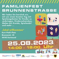 Gemeinsam mit unseren Netzwerkpartnern des Netzwerks lokal.willkommen laden wir herzlich zum Familienfest Brunnenstraße ein! Das Fest findet am Freitag, den 25.08.2023 von 14-18 Uhr auf dem Kurt-Piehl-Platz (U Brunnenstraße) in der Dortmunder Nordstadt statt.