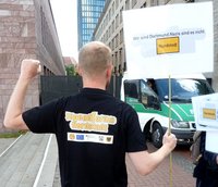 Der Planerladen e.V. begrüßt das deutliche Signal des Verbotes der Nazi-Aufmärsche rund um den Antikriegstag. Es ist an der Zeit, ausdrücklich zu zeigen, wem die Stadt gehört. Daher hat der Planerladen auch am Friedensfest des DGB im Rahmen seiner Aktion "Wir sind Dortmund. Nazis sind es nicht." am Katharinentor teilgenommen und mit Transparenten Flagge gezeigt.
