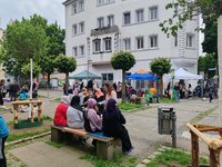 Bunt, fröhlich und sehr gut besucht war das von Lokal Willkommen organisierte Familienfest auf dem Kurt-Piehl-Platz im Brunnenstraßenviertel am 17. Mai. Vor allem Kinder kamen voll auf ihre Kosten, während ihre Eltern sich über die Angebote von verschiedenen in der Nordstadt aktiven sozialen Organisationen informieren konnten.