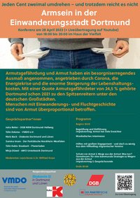 Armutsgefährdung und Armut haben ein besorgniserregendes Ausmaß angenommen, angetrieben durch Corona, die Energiekrise und die enorme Steigerung der Lebenshaltungskosten. Mit einer Quote Armutsgefährdeter von 24,5 % gehörte Dortmund schon 2021 zu den Spitzenreitern unter den deutschen Großstädten. Menschen mit Einwanderungs- und Fluchtgeschichte sind von Armut überproportional betroffen.