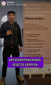 Der Paritätische Gesamtverband hatte seine Mitgliedsorganisationen zum Mitmachen bei der Aktion aufgerufen: In dem Video sollen verschiedene Stimmen aus den Organisationen zusammenkommen und aufzeigen, warum Soziale Arbeit für und mit Schutzsuchenden und Migrant*innen aber auch für die Gesamtgesellschaft und den Zusammenhalt so wichtig ist - und daher nachhaltig abgesichert werden muss.