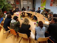 Sherko Fatah, ein bekannter Schriftsteller mit deutsch-irakisch-kurdischen Wurzeln, las für den kompletten 12. Jahrgang der Anne-Frank-Gesamtschule und für Jugendliche in der Jugendforum-Sitzung im Treffpunkt Stollenpark nicht nur aus seinem zuletzt erschienenen Buch „Der letzte Ort“, sondern beantwortete vor allem zahlreiche Fragen zum Beruf des Schriftstellers und zum heutigen Literaturbetrieb. Aus erster Hand erfahren zu können, wie es sich heute als Schriftsteller leben lässt, war für die Jugendlichen spannend, interessant aber auch überraschend!
