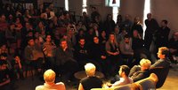 Die Diskussion mit dem Publikum verlief zweisprachig, sogar zeitweise in vier Sprachen (deutsch, türkisch, rumänisch und romanes), dafür aber erstaunlich diszipliniert, sehr konzentriert und sachlich.