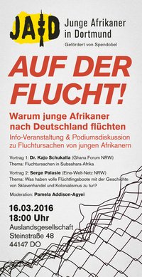 Eine Veranstaltung des Vereins junger Deutsch-Afrikaner e.V. im Rahmen des Projekts „JAID – Junge Afrikaner in Dortmund“ (gefördert von Spendobel) in Kooperation mit Planerladen e.V., Auslandsgesellschaft NRW e.V., Ghana Forum NRW und Afrido. – Die Veranstaltung wird unterstützt von Engagement Global – Service für Entwicklungsinitiativen.