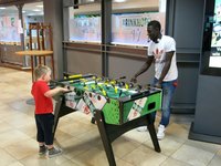 Im Außengelände lockten sportliche Aktivitäten wie die Kleinfußballfeldanlage “Street-Kick“ oder eine Messanlage für die Ballgeschwindigkeit sowie eine Torwand die Freunde des runden Leders. Für die jüngeren Gäste durften eine schwarz-gelbe Hüpfburg und das BVB-Maskottchen Emma natürlich nicht fehlen.
