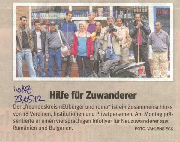 Im freundeskreis nEUbürger und roma haben sich 18 Vereine/Institutionen und Privatpersonen zusammengeschlossen, um die Zuwanderer zu unterstützen und sich für ihre Belange einzusetzen.