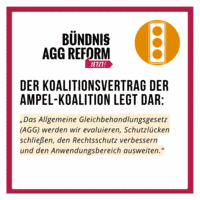 Auf der heutigen Pressekonferenz des zivilgesellschaftlichen Bündnis AGG Reform - Jetzt!, die anlässlich des Jahrestags des Inkrafttretens des Allgemeinen Gleichbehandlungsgesetzes (AGG) stattgefunden hat, kritisieren die Vertreter*innen die Untätigkeit der Ampelkoalition bei der Verbesserung des Diskriminierungsschutzes. Deutschland hat eines der schwächsten Antidiskriminierungsgesetze in Europa und trotzdem bleibt der von der Ampel im Koalitionsvertrag in Aussicht gestellte Fortschritt bei der Reform des AGG aus. Dieser Zustand ist insbesondere angesichts des stetig wachsenden Zuspruchs für rechtsextreme Parteien und ihren Bewegungen für Betroffene und ihre Vertreter*innen nicht hinnehmbar. Diskriminierung ist antidemokratisch und gefährdet den gesellschaftlichen Zusammenhalt. Deutschland ist Schlusslicht, wenn es um die Gewinnung von Fachkräften geht. Als Wirtschaftsstandort sollte das Land alles im globalen Wettbewerb um Fachkräfte dafür tun, um diese für den deutschen Arbeitsmarkt zu gewinnen und auch zu halten.