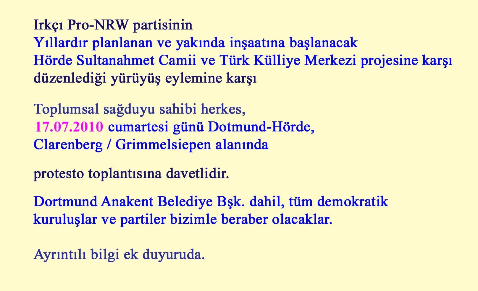 Am 17.7. hat Pro NRW eine Kundgebung am zukünftigen Bauplatz der Moschee "Am Grimmelsiepen" in Dortmund Hörde angekündigt.