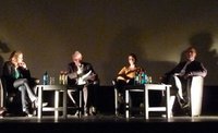 Nach einer kurzen Pause von den Eindrücken des Films wurde gegen 19:10 Uhr die Podiumsdiskussion eröffnet. Podiumsteilnehmer waren Claudia Luzar von BACK UP (Beratungsstelle für Opfer rechter Gewalt), Hartmut Anders-Hoepgen, Sonderbeauftragter der Koordinierungsstelle für Vielfalt, Toleranz und Demokratie der Stadt Dortmund und Anna Spaenhoff, Studentin und aktive Bürgerin u.a. bei Dortmund Nazifrei!.