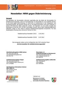 Die fünf Servicestellen für Antidiskriminierungsarbeit in NRW haben ihren dritten gemeinsamen E-Mail-Newsletter rund um das Thema Antidiskriminierung herausgebracht. Darin finden Sie Berichte aus der Arbeitspraxis der Servicestellen, Hinweise auf Veranstaltungen und auf Publikationen zum Handlungsfeld.