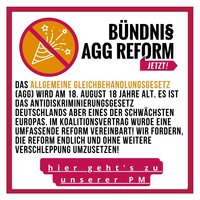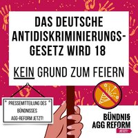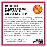Das Bündnis AGG Reform-Jetzt! ist ein zivilgesellschaftlicher Zusammenschluss von über 120 Organisationen, die gemeinsam 11 Forderungen an eine AGG-Reform stellen. Mehr Infos -> hier.