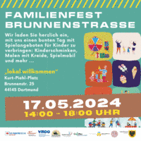 Gemeinsam mit Lokal Willkommen Innenstadt Nord, VMDO, GrünBau, dem Familienbüro der Stadt Dortmund und der Stadtteilschule e.V. nimmt der Planerladen am Familienfest Brunnenstraße teil. Das Fest findet am Freitag, 17. Mai von 14:00 bis 17:00 Uhr auf dem Kurt-Piehl-Platz im Zentrum des Brunnenstraßenviertels statt.