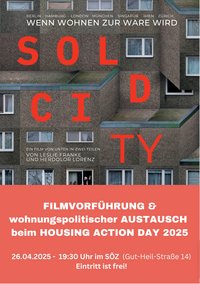 Mieten steigen, bezahlbarer Wohnraum schwindet, Diskriminierung bei der Wohnungssuche ist alltäglich und das Grundbedürfnis Wohnen wird zur Ware. Der Film Sold City 2 von Leslie Franke und Herdolor Lorenz greift diese Entwicklung auf und lässt Betroffene, Aktivist*innen und Expert*innen zu Wort kommen.