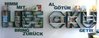 Das Konzept der „Bücherregalkampagne“ sieht vor, dass das Bücherregal von Besucher*innen der Einrichtungen bzw. der Schülerschaft selbst verwaltet wird. Das bedeutet, dass die Nutzer*innen die Literatur eigenständig ausleihen, lesen und anschließend wieder zurück ins Regal stellen. Auf diesen Ablauf verweist auch die Bauweise des Regals in Form des Wortes „Lies“ in der Sprache, die in der jeweiligen Einrichtung neben Deutsch überwiegend gesprochen wird oder in den Schulen für den muttersprachlichen Unterricht den Schwerpunkt bilden. Über und unter dem Regal sind Holzdekorationen als Gebrauchshinweise („Nimm mit“ und „Bring zurück“) angebracht. Durch diese Ergänzungen wird das Vorgehen in einer der vorbestimmten Landessprachen (türkisch, bulgarisch, rumänisch, arabisch) visualisiert.