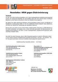 Die fünf Servicestellen für Antidiskriminierungsarbeit in NRW haben ihren vierten gemeinsamen E-Mail-Newsletter rund um das Thema Antidiskriminierung herausgebracht. Dieser Newsletter widmet sich einem Sonderthema: Im Jahr 2012 blickt Nordrhein-Westfalen auf 15 Jahre landesgeförderte Antidiskriminierungsarbeit zurück. Der vorliegende Newsletter der Servicestellen steht unter dem Zeichen dieses 15-jährigen Bestehens und der damit verbundenen Arbeit der Antidiskriminierungsbüros.