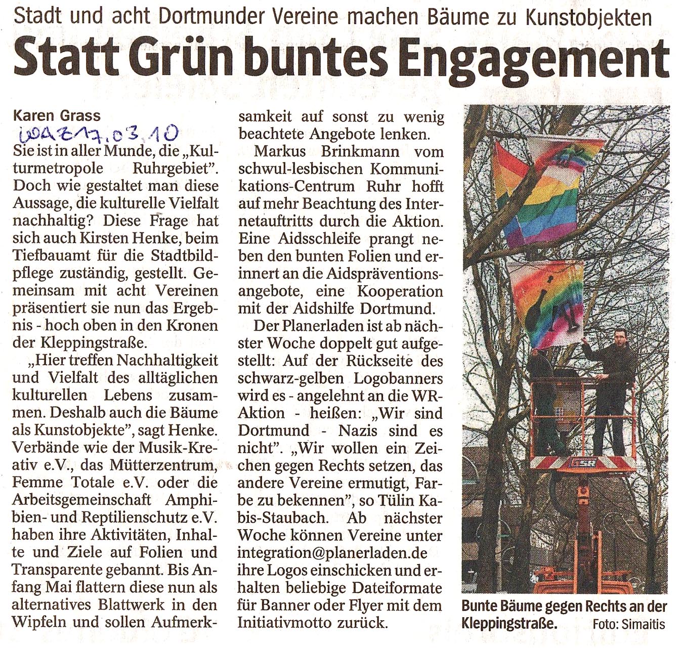 Hier geht es zu dem Artikel "Statt Grün buntes Engagement" (WAZ, 17.03.2010)