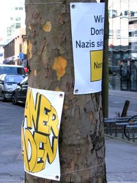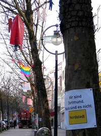 Die Anbringung der Banner an geeigneten Bäumen wurde vom Tiefbauamt übernommen. Die Plakate sollen wahrscheinlich bis Mai oder länger die Kleppingstraße schmücken. Die Botschaft des Planerladens aus der Nordstadt soll zugleich signalisieren, dass dieser Stadtteil als zentraler Integrationsmotor für Zuwanderung ein substanzieller Bestandteil der Stadt ist und – vielleicht mehr als andernorts in der Stadt – Nazis in diesem multi-ethnischen Gefüge keinen Raum finden, ihre menschenverachtenden Ideen zu verbreiten.