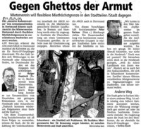 Um in von Armut besonders stark betroffenen Stadtteilen Besserung zu erzielen, spricht sich der Mieterverein in einem Artikel in den Ruhrnachrichten vom 13. Juli 2009 für einen flexibleren Umgang mit Miethöchstgrenzen aus, so dass Hartz-IV-Empfänger auch in „besseren“ Wohnstandorten die Chance auf eine Wohnung haben.