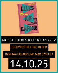 „Alles auf Anfang“ ist der Titel eines gemeinsamen Buchs von Hadija Haruna-Oelker und Max Czollek. Gemeinsam machen sich die Autor*innen auf die „Suche nach einer neuen Erinnerungskultur“, so der Untertitel.