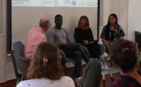 Doh Formuso, Emely und Carima, drei langjährige Mitglieder der Jugendgruppe des 1990 gegründeten Vereins Africa Positive, berichteten anschließend von ihrer Vereinsarbeit. Der Verein möchte das in der Öffentlichkeit oft verbreitete negative Bild zum positiven verändern. Das heißt Aufklärungs-, Bildungs-, Netzwerkarbeit leisten und junge Schwarze empowern, die schon in frühen Jahren Diskriminierungserfahren machen. Mit unterschiedlichsten Angeboten wird Kindern und Jugendlichen das Gefühl gegeben, dass sie nicht alleine sind und ihre Erfahrungen ernst genommen werden. Beim Projekt „Raubkunst“, bei welchem Jugendliche sich mit dem Thema Kolonialismus auseinandersetzten, waren sie dafür zu Museen in Bremen, Hamburg und Berlin gereist. Um positive Vorbilder hingegen geht es beim Projekt „Erzähl mal… wie Du es geschafft hast“. Stadtweit bekannt ist Africa Positive e.V. insbesondere für das musikalische AfroRuhr-Festival, welches dieses Jahr vom 28. bis zum 30. Juni stattfindet.