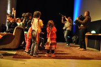 Im Anschluss an die Filmvorstellung gab es zunächst eine furiose musikalische Live-Einlage jener bulgarischen Straßenmusiker Hasan und Mehmet, die auch im Film ihren Auftritt hatten. Schnell wich die nachdenkliche Stimmung und die Lebensfreude der tanzenden Menschen und klatschenden Kinder erfüllte den Saal.