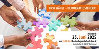 Unsere Demokratie ist in der Defensive: Europaweit, und auch in Deutschland, verliert sie zunehmend an Zustimmung. Was bedeutet das für unsere Gesellschaft? Welchen Bedrohungen ist unser politisches System ausgesetzt und wie lässt sich die freiheitlich-demokratische Grundordnung schützen? Im Vorfeld der Kommunalwahl am 14. September 2025 geben wir an diesem Abend engagierten Gruppen und Personen das Wort, die sich in Dortmund ganz konkret für unsere Demokratie stark machen. Die Veranstaltung findet im Rahmen der Internationalen Woche der Stadt Dortmund (21.-29.6.2025) statt.