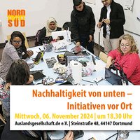Zum 38. Mal findet am Mittwoch, dem 06. November 2024 um 18:30 Uhr das zusammen mit der Auslandsgesellschaft.de organisiertes Bürgerforum Nord trifft Süd statt, diesmal unter dem Leitthema „Nachhaltigkeit von unten – Initiativen vor Ort“.
