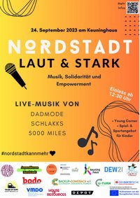 Wie ein Minifestival ist das Programm der Veranstaltung gedacht: verschiedene Musikgenres auf der Bühne, thematischer Input von Beratungsstellen und Expert*innen sowie Kreativ- und Spielangebote für Kinder. „Der Ort und das Programm laden zum Feiern ein, weil wir in der Nordstadt eine starke Gemeinschaft sind. Aber gleichzeitig wollen wir auch die Möglichkeit zum Austausch geben und informieren über Diskriminierung, Rassismus und die Polarisierung in der Gesellschaft“, so das Veranstaltungsteam.